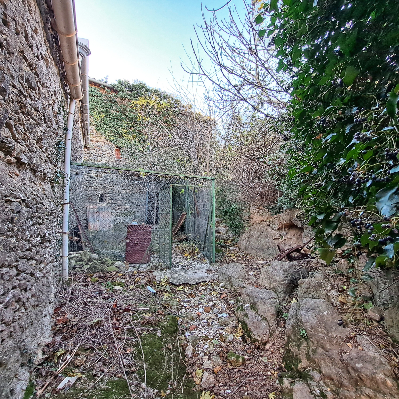 Vieille bâtisse en pierre à rénover. 56 m², terrain de 55m². Zone urbanisée.