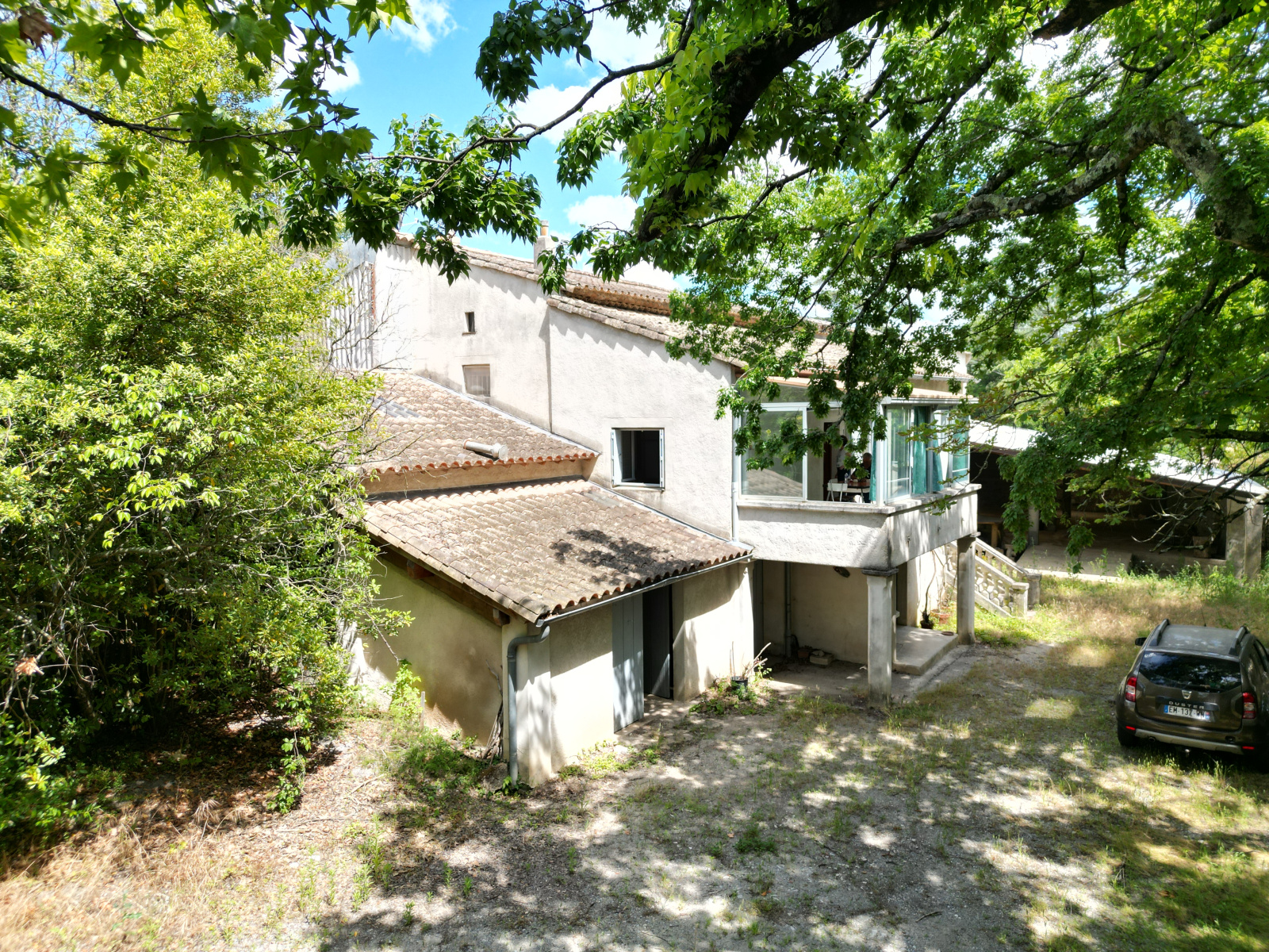 St Hippolyte du Fort, une aubaine pour les bricoleurs, collectionneurs, artisans... Maison d'habitation d'environ 110 m², 3 chambres + atelier de 100 m², 400 m² de hangar, 220 m² de préau sur 7000 m² de terrain non constructible. Rare et volumes impressionnants.