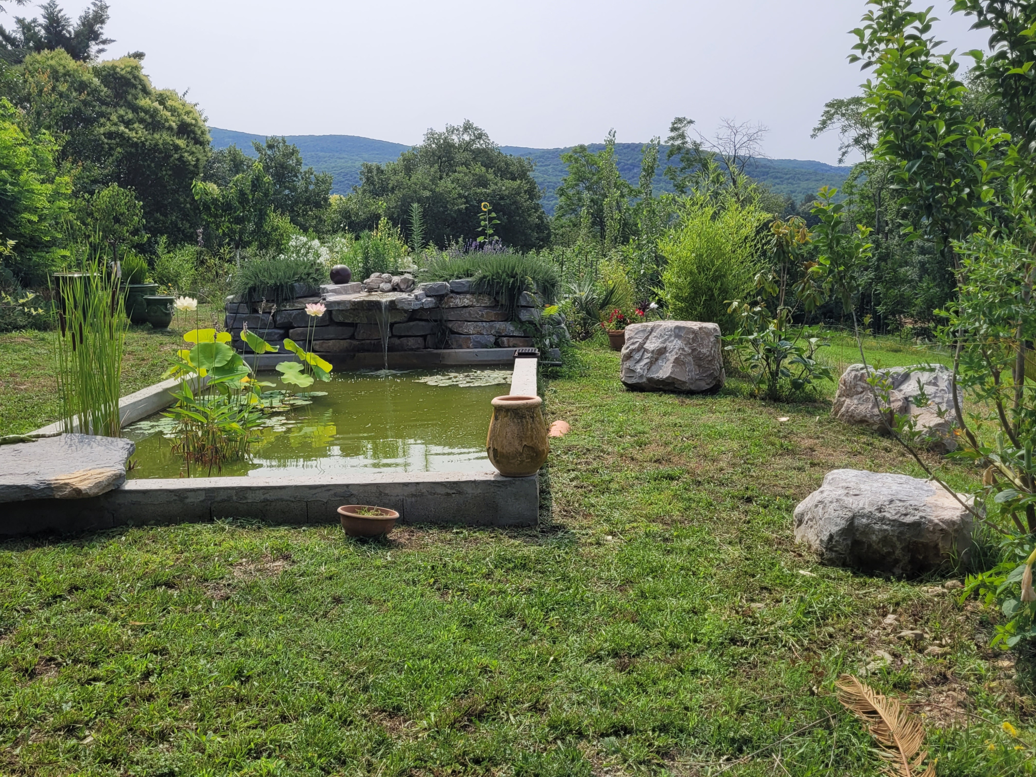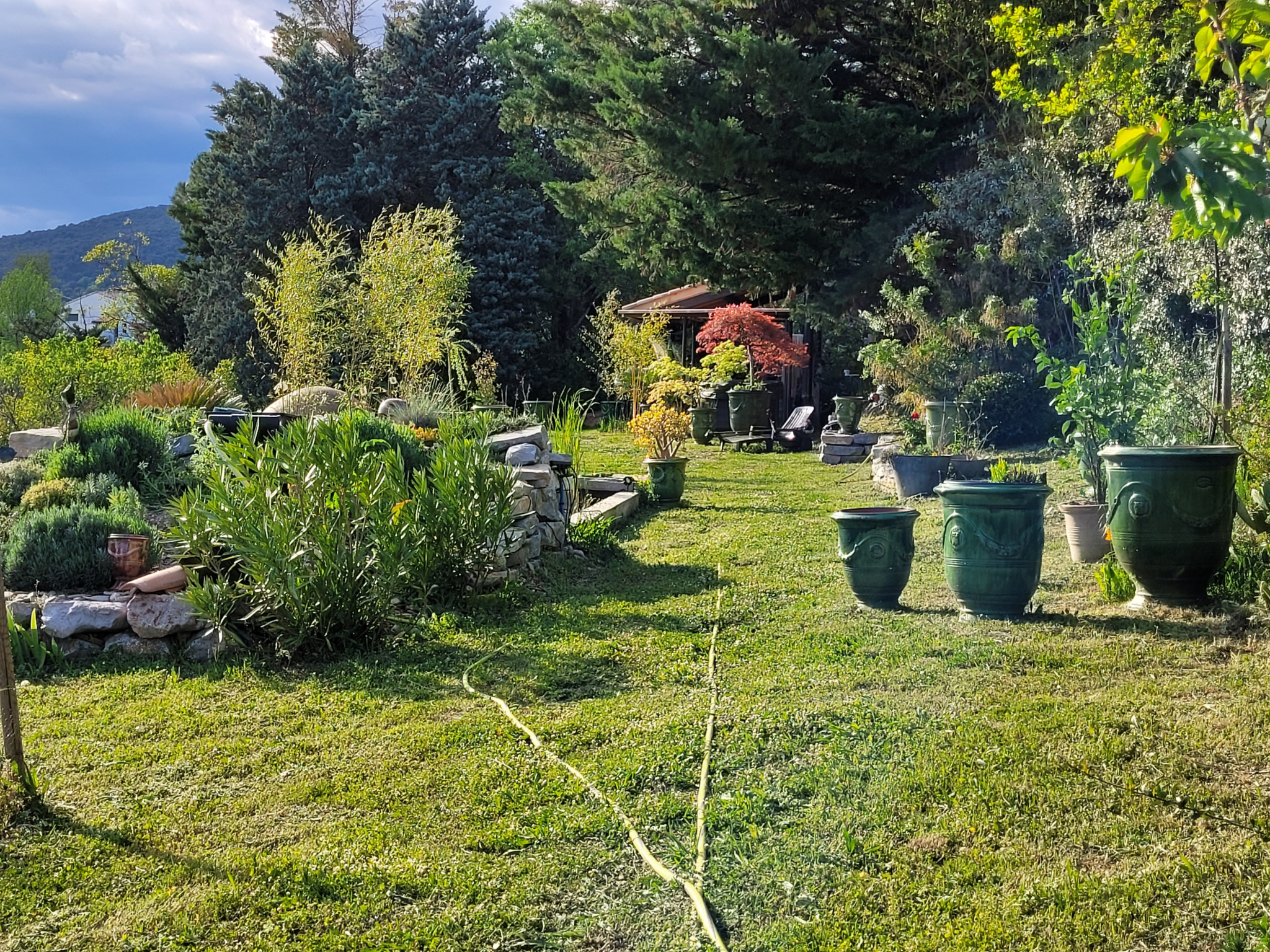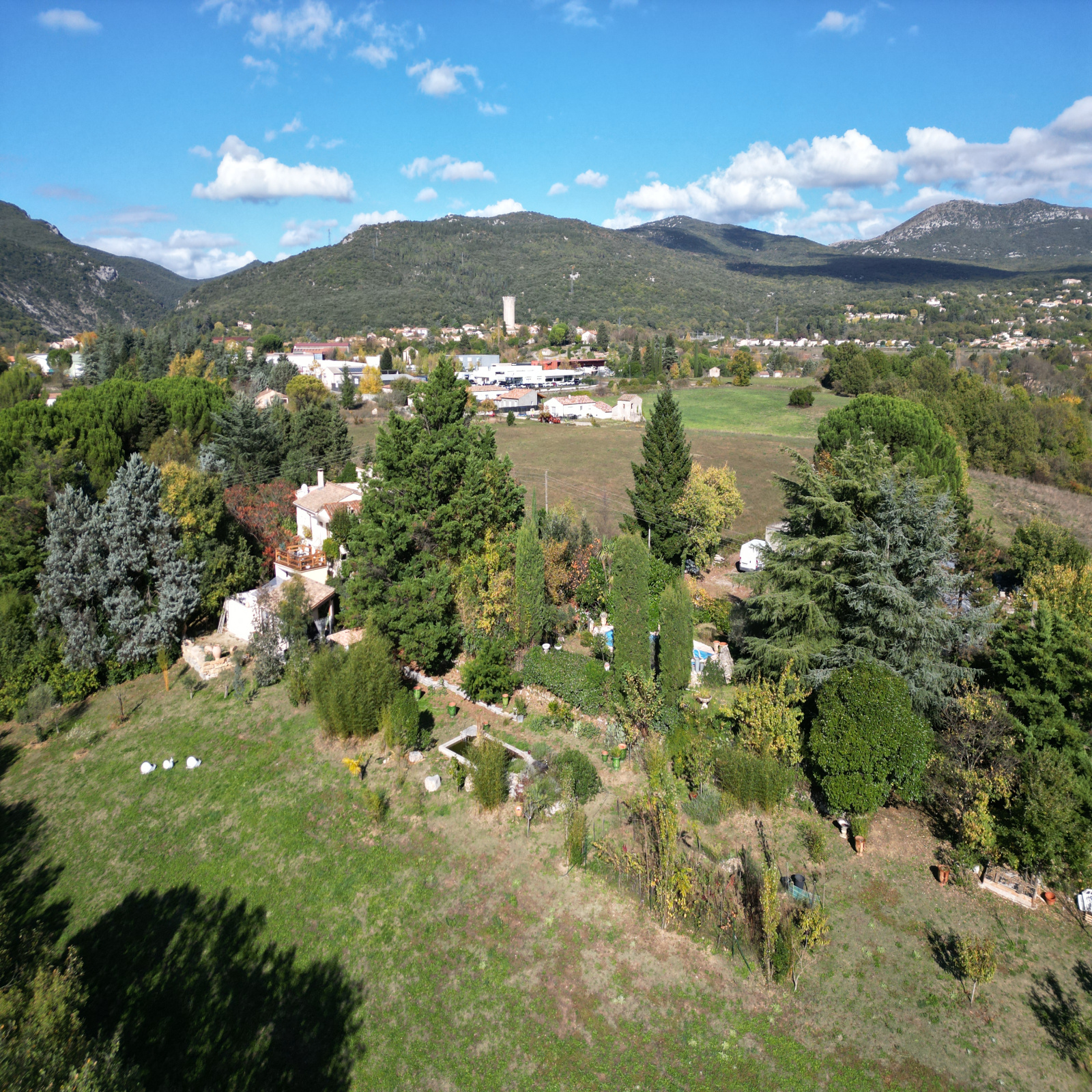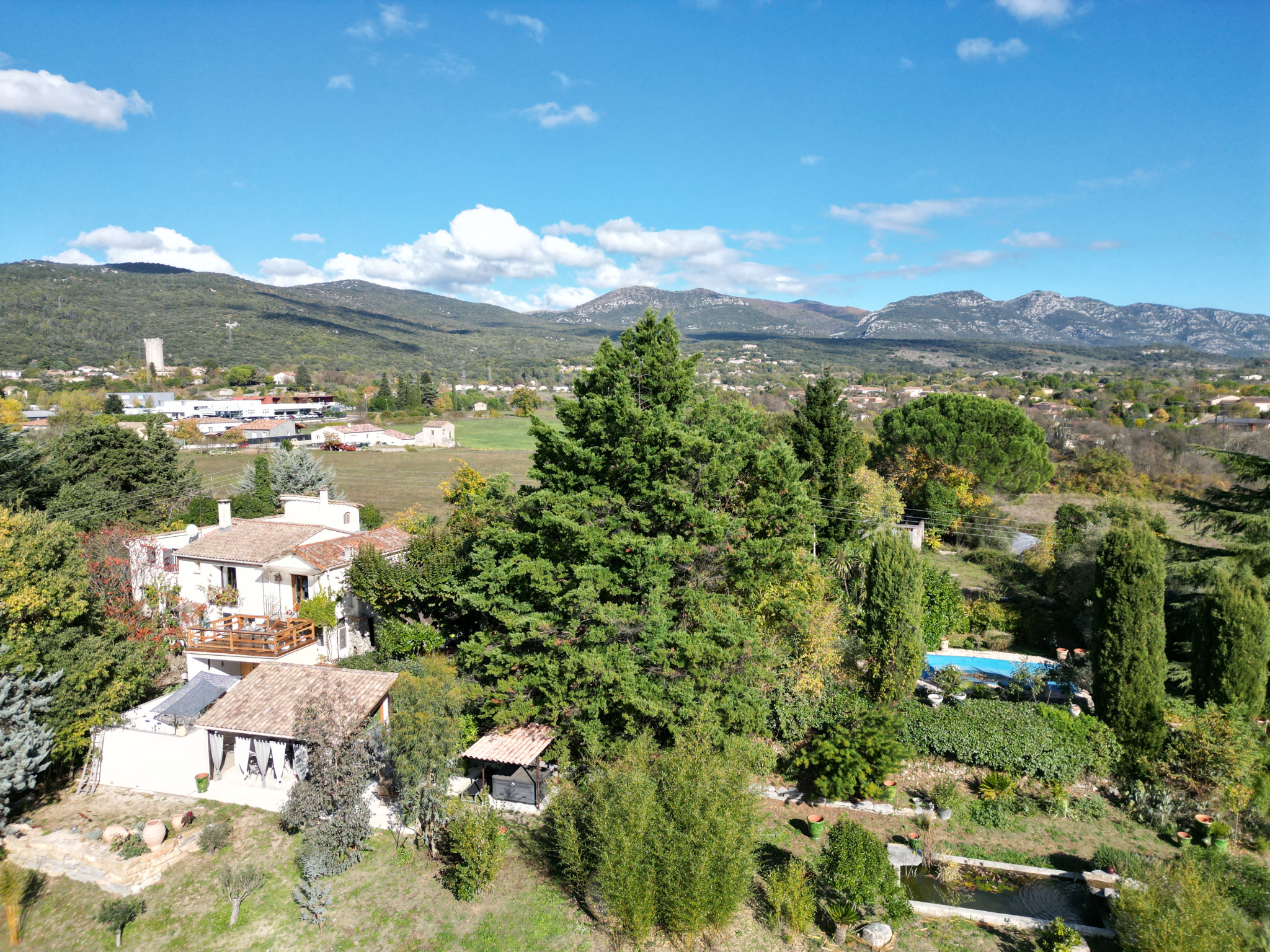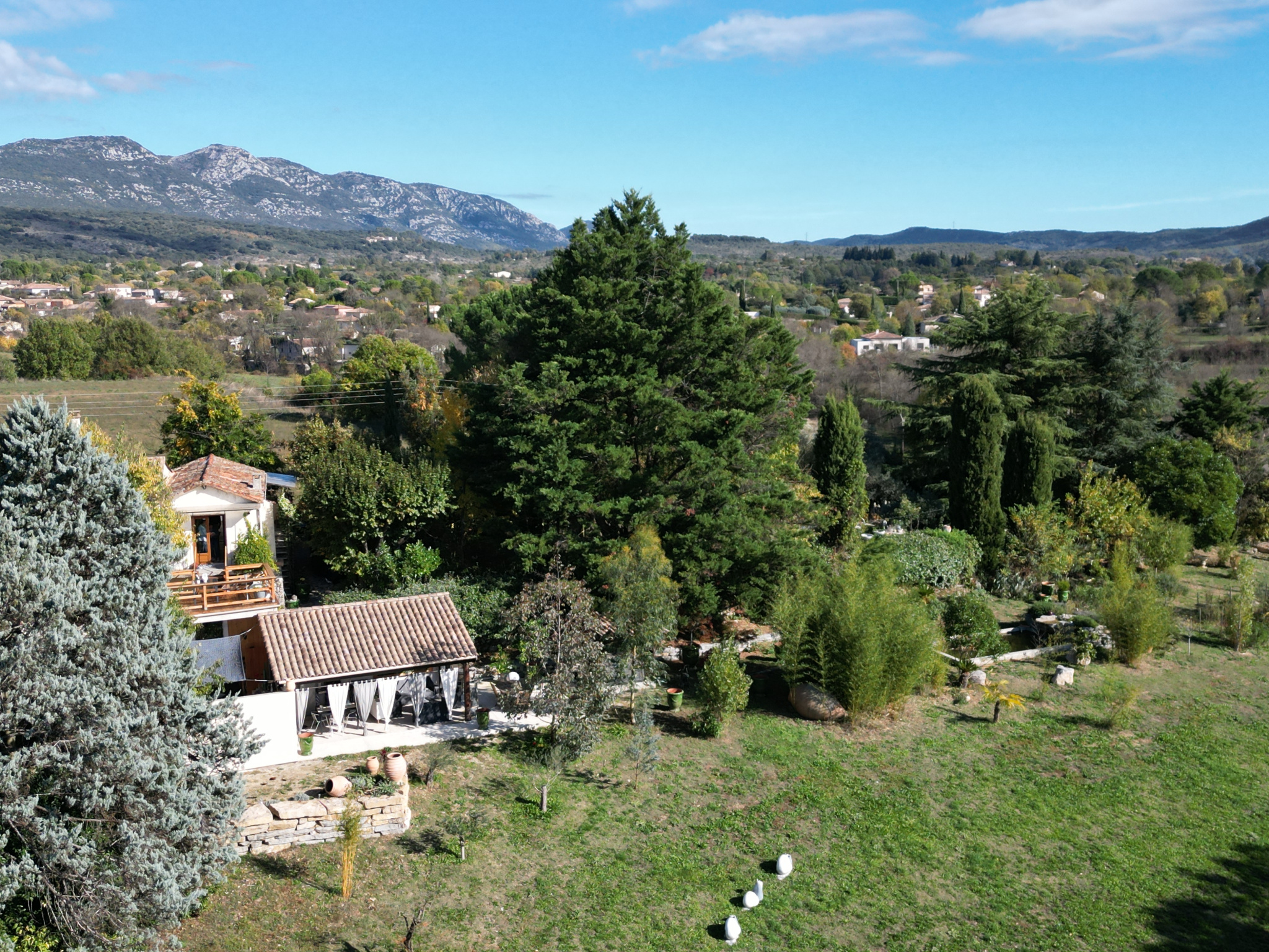 Le parc arboré de 10 500 m² est un véritable havre de paix, avec vue dégagée sur les reliefs cévenols.